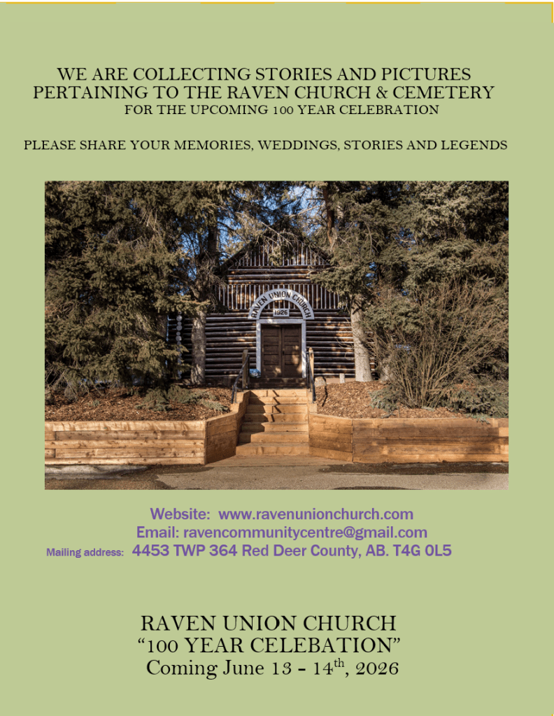 Raven Union is a non-denominational 100 year old church and gravesite set in a unique scenic location along the Raven River in West Central Alberta. It receives hundreds of visitors every year from all over the world