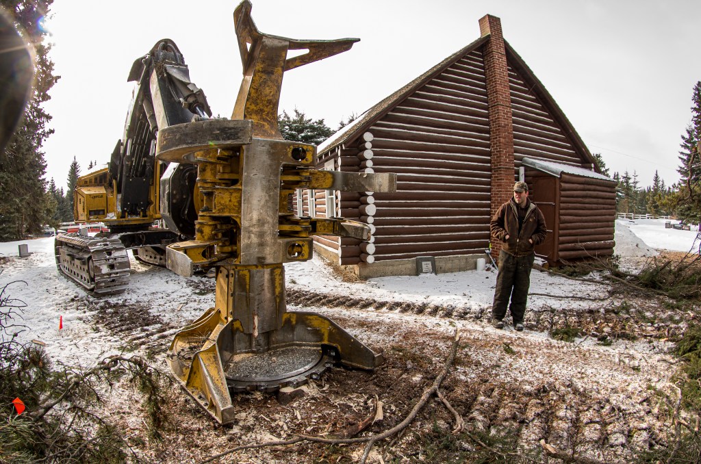 Over several winters we have been clearing out the giant trees that have reached the end of thier cycle and were threatening to topple over on the the gravesites and building: All the machinery and labor was donated by local community